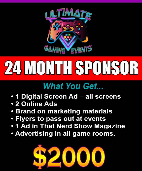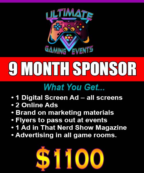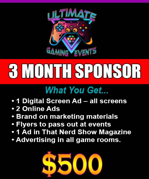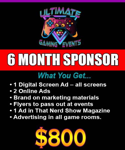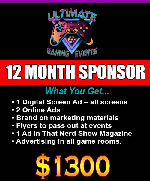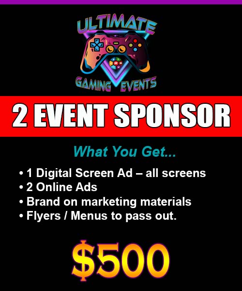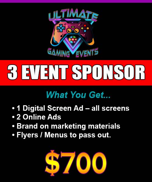 Ultimate Gaming Events is seeking sponsorship! We want to promote your brand to our huge audience. Reach millions of customers! Partner with a gaming and events company that has many forms of advertising. This is the best kind of company to promote your brand! We have four sponsorship packages that range from 3 months to 24 months.