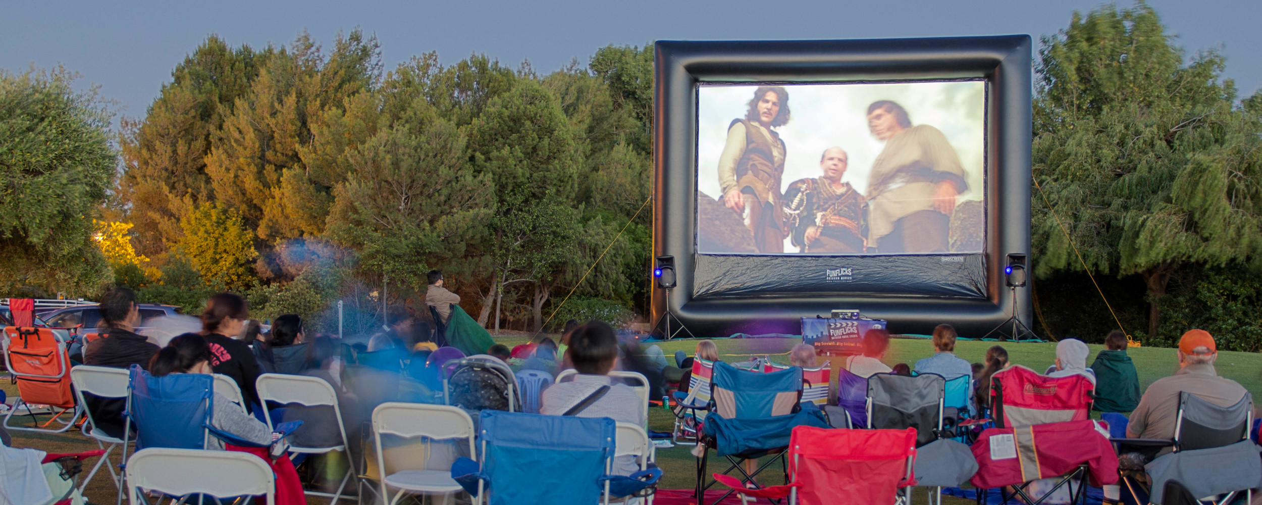 Ultimate Gaming Events not only uses big inflatable screens for gaming, but we also do outdoor movie nights. Watch classic movies or the latest hits that you can rent online by hosting a movie night and playing it on a big inflatable screen. We have different sizes all the way from 16 ft. to  30 ft. We bring the screens, the projector, the sound system and the movies. No need for streaming, we have the movie you’re looking for without having to use an internet connection.  Contact us for your next movie event.